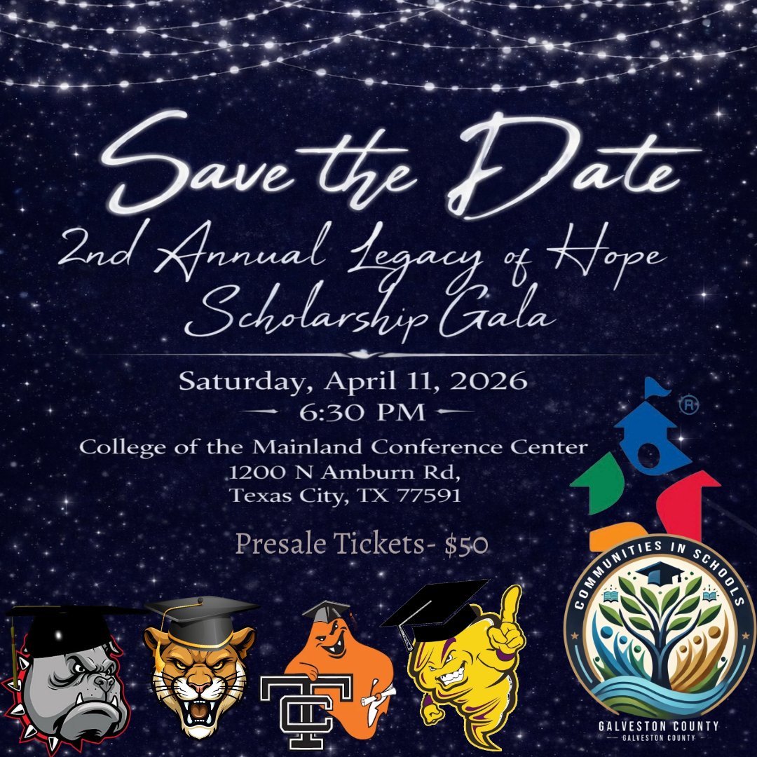 Communities in Schools-Galveston County is dedicated to celebrating the hard work and perseverance of four exceptional graduating high school seniors, each of whom will be awarded a one-time $3,000 scholarship