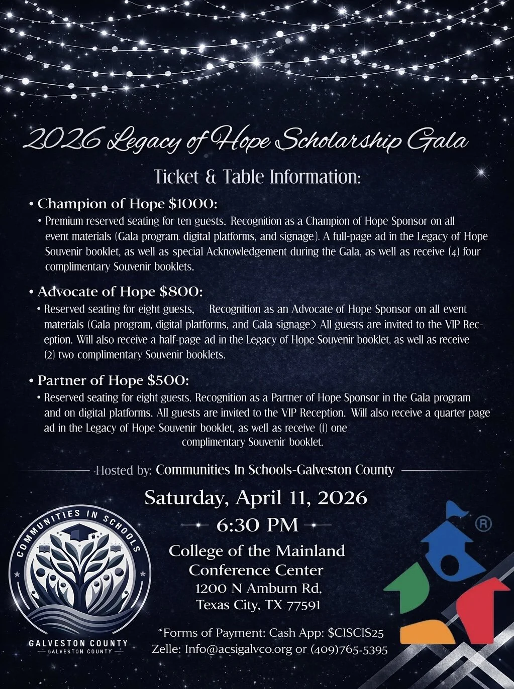 Your support helps us provide these deserving students with the resources they need to achieve their academic and professional goals. By attending the Legacy of Hope Scholarship Gala, you contributing to our theme of “A Legacy of Hope: Building Brighter Tomorrows.” 2026 Theme: A Night Where Hope Shines!